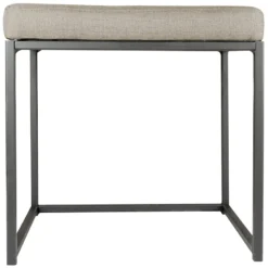 Arca Glazed Gold Wire Vanity Stool/Padded White Faux Leather Seat