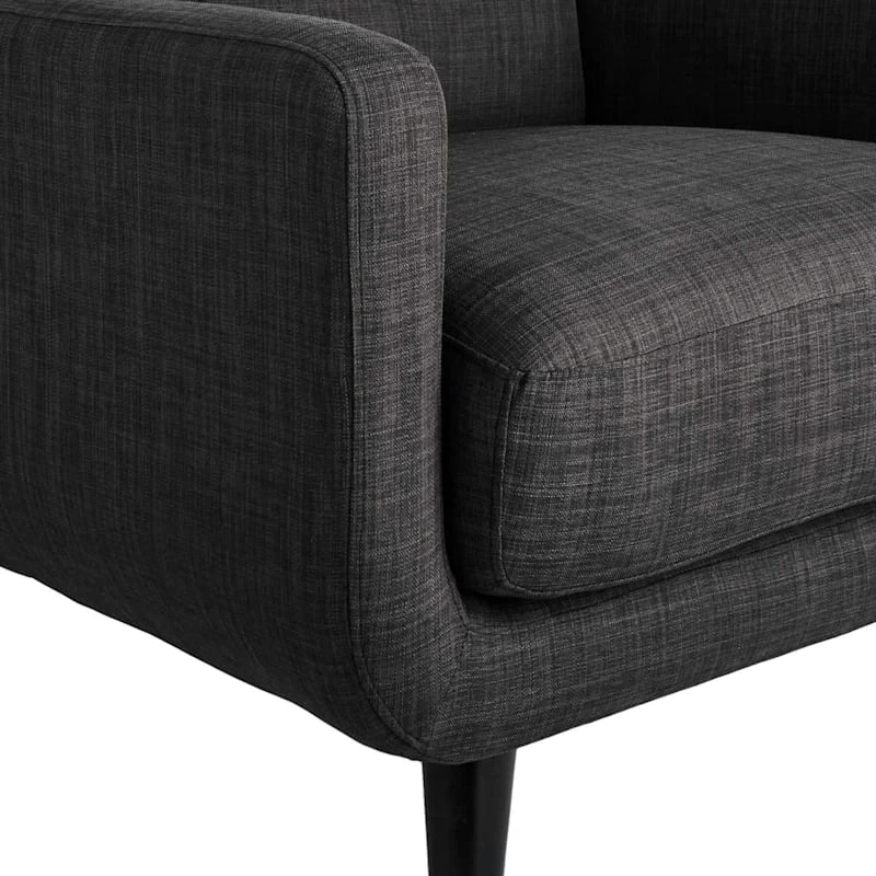 Lounge in the coolest of style on our exciting Hadley Chair. This contemporary, mid-mod seat features textured grey upholstery that is both cool and classy with a rounded base that curves into supportive arms, creating a timeless modern piece for any room in your home. Tapered wooden peg legs support Hadley and provide a stunning addition to the overall personality.