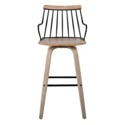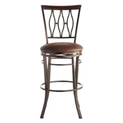 Marsol Brown Metal Swivel Barstool With Faux Leather Seat