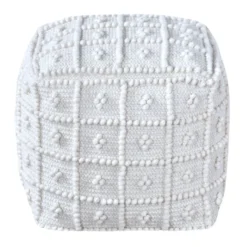 Found & Fable Alex Handwoven Fringe Square Pouf