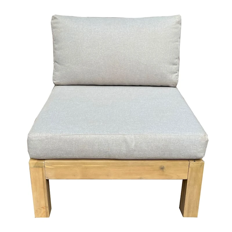 Modern farmhouse meets At Home prices in Honeybloom, our exclusive new brand that celebrates life lived together. Our Park City outdoor middle chair will fit perfectly into any corner along with the Park City corner piece chair (sold separately). Spruce up your outdoor space with this wood and polyester upholstered fabric and the simple square design is great for customizing the fit on any patio perfectly. And guess what? The seat cushions are included!