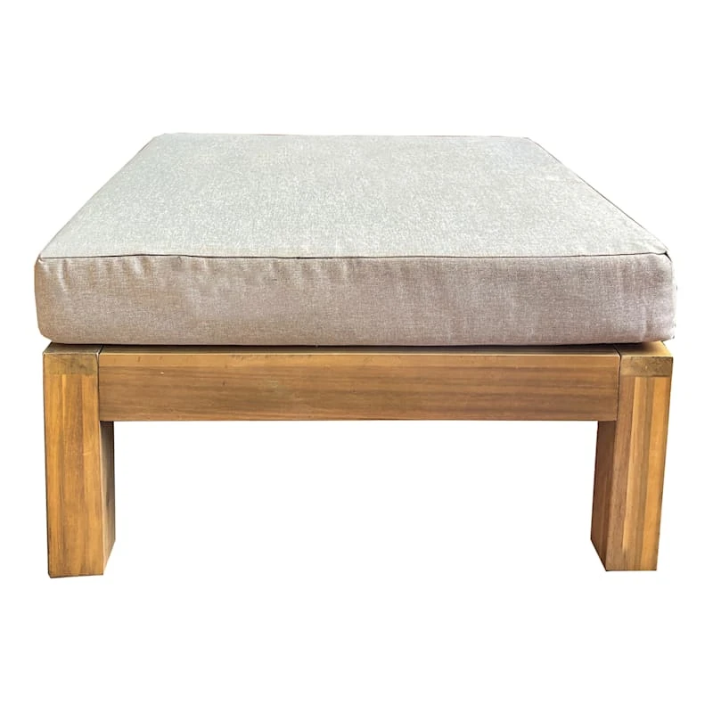 Modern farmhouse meets At Home prices in Honeybloom, our exclusive new brand that celebrates life lived together. Our Park City outdoor ottoman is ideal for adding a little laid-back style to your patio, deck or backyard. Made of acacia wood and manufactured wood with a sturdy all-weather upholstered cushion, this ottoman is both comfortable and right on trend. Enjoy entertaining outdoors all spring and summer and sit back and relax with your favorite guests and nibbles in the comforting outdoor breeze.