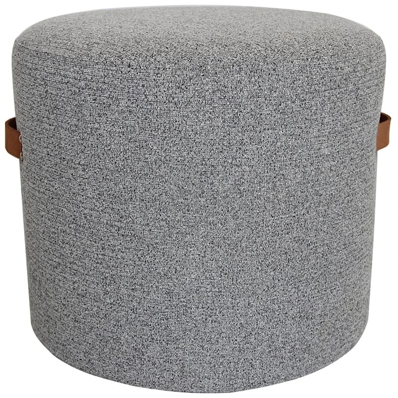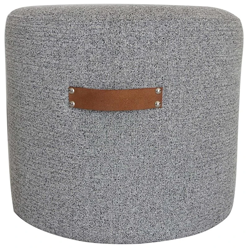 Modern farmhouse meets At Home prices in Honeybloom, our exclusive new brand that celebrates life lived together. Bring a touch of contemporary style to your seating group with our Rica round pouf. Upholstered in a neutral light grey textured fabric, this pouf features riveted leather handles for easy portability. Poufs are a versatile piece in any room in your home — use as a footrest, even a convenient side table. Get more than one for added comfort for everyone!