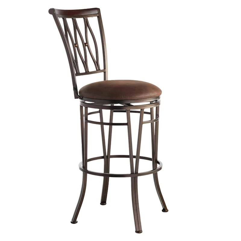 Marsol Brown Metal Swivel Barstool With Faux Leather Seat