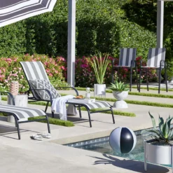 Laila Ali Stackable Black & White Striped Sling Patio Barstool