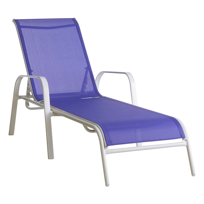 Stackable Cobalt Blue Sling Outdoor Chaise Lounge Chair With White Frame