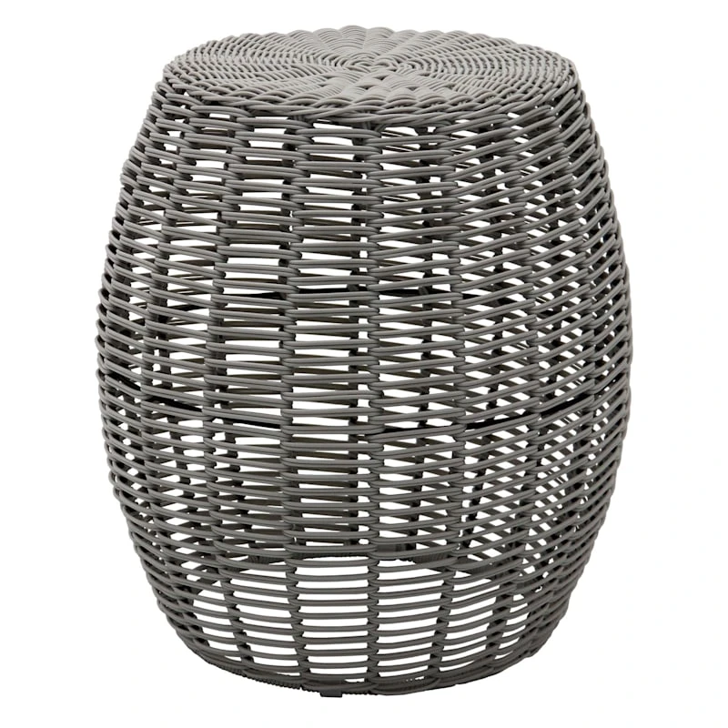 On first thought, you might be tempted to relegate our Rio grey wicker ottoman to the garden or patio, but it would be just as striking sitting beside your sofa or acting as an end table next to your favorite chair. Designed to live outdoors (or possibly in), this wonderful piece is crafted of synthetic wicker and features a lovely curved drum silhouette.