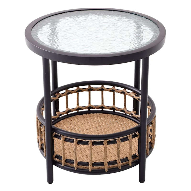 Tracey Boyd Brown Wicker End Table With Glass Top