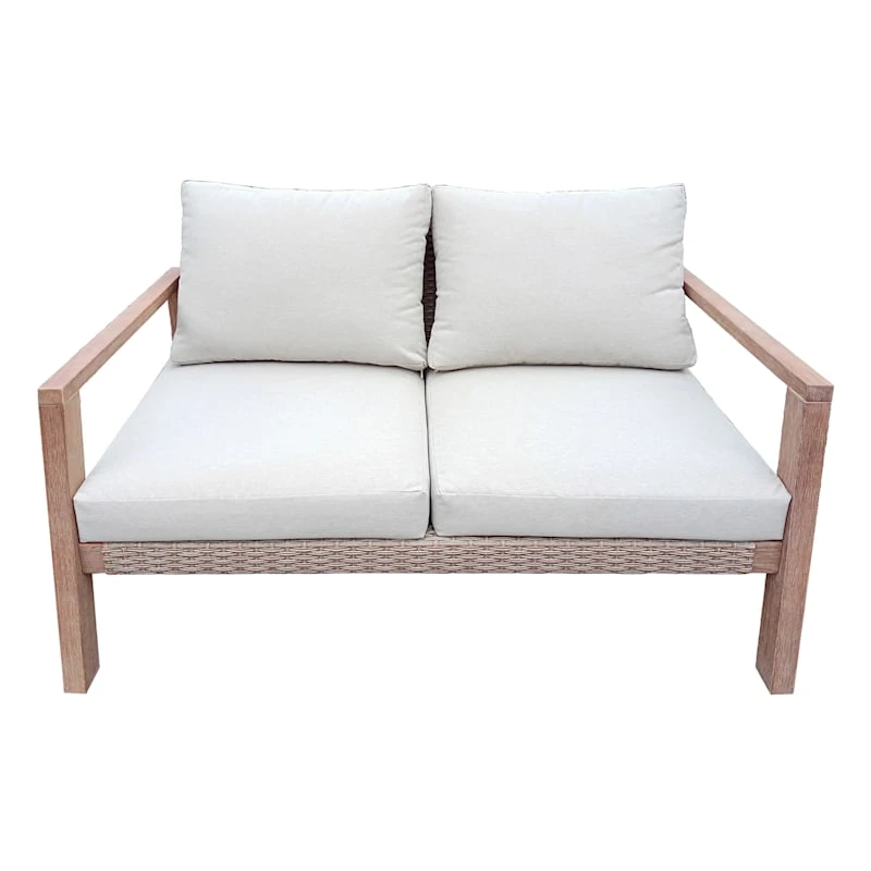 A jack of all trades, including graphic designer, carpenter, contractor, author and beloved reality TV host, Ty Pennington has curated a new and exclusive collection for At Home. Create your own unique outdoor setting with our key west loveseat. Crafted of wood and all-weather synthetic wicker, this loveseat has a wonderfully sophisticated look that�s ready for any alfresco situation.