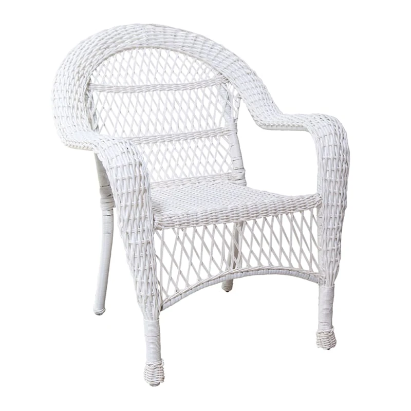 Enjoy the season and get outside with our white wicker outdoor lounge chair. Buy in multiples and be sure to have enough outdoor seating for family and friends. This outdoor all-weather old world style wicker chair features a fanciful rounded look with a metal frame and a comfortable synthetic wicker in an open weave that’s breathable. This bright white chair will last even longer if protected from the elements. Pair with any patio table or garden stool and enjoy the great outdoors to the fullest.